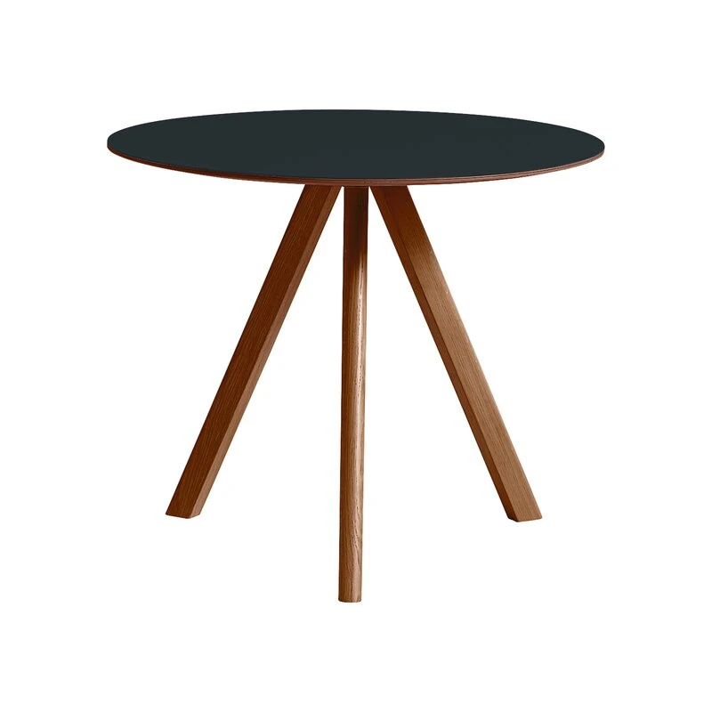 The HAY Copenhague CPH20 table is part of the Copenhague furniture collection designed by Ronan and Erwan Bouroullec. The round table is made from lacquered walnut and has a velvety smooth linoleum top – the porous material has a pleasant feel to it and is prone to developing a patina over time.