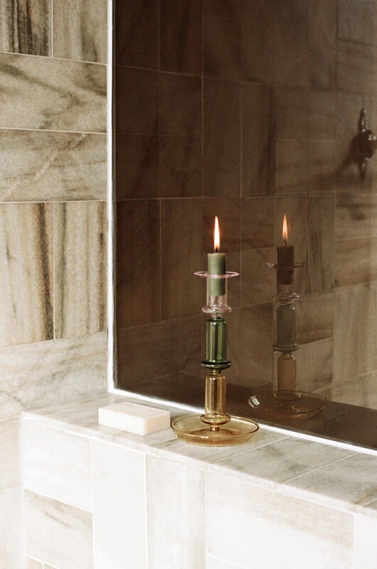 Flare by HAY is a modern interpretation of a classic candleholder: the bright colours and transparent structure make the Flare candleholder a distinctive and fresh addition to your table setting and home decor. Place a multicoloured candle on the candleholder and enjoy the beauty of all the colours of the rainbow! The 21 cm high candleholder is made of durable borosilicate glass.