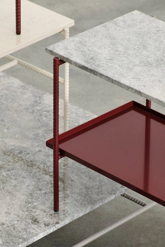 The Rebar side table by HAY combines an industrial alabaster-coloured steel bar frame with an elegant tabletop in marble. The union of different shapes and structures gives the Rebar table an interesting, distinctive character, and the robust materials make it stand the test of time. Designed by Sylvain Willenz, the coffee tables and side tables of the Rebar collection are designed for both home use and public environments.