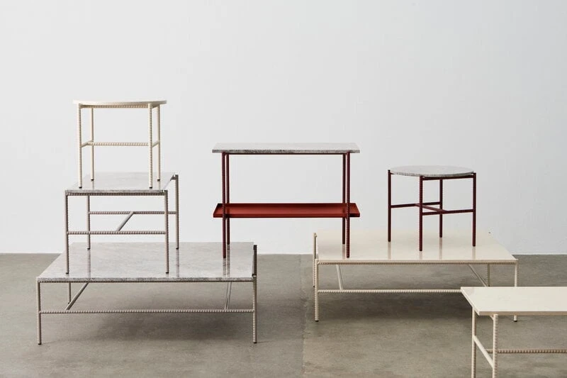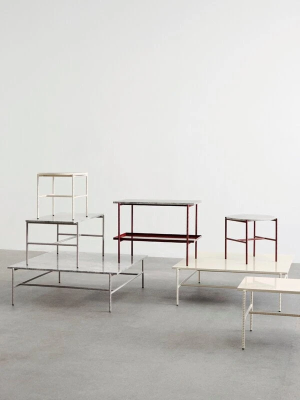 Rebar side table by HAY combines an industrial, steel bar frame with an elegant tabletop in grey marble. The union of different shapes and structures give the Rebar table an interesting, distinctive character, and the robust materials make it stand the test of time. Designed by Sylvain Willenz, the coffee tables and side tables of the Rebar collection are designed for both home use and public environments.
