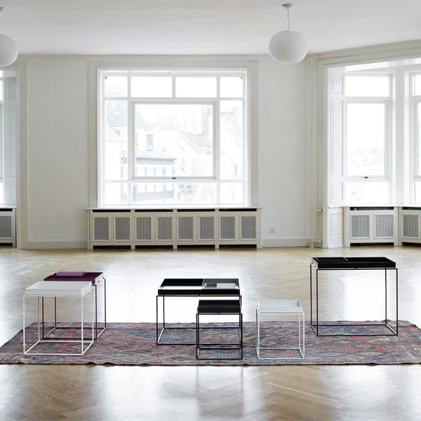 HAY’s Tray tables will bring a new look to any living room. Large, traditional sofa tables can be replaced by attractive groups of smaller Tray tables. Tray is composed of a simple powder-coated steel frame and a removable tray. The tables can be used as sofa or side tables in the living room, nightstands in the bedroom – anywhere extra table space is needed. Combine Tray table with smaller functional HAY trays to create a monochrome look or to add a touch of colour.